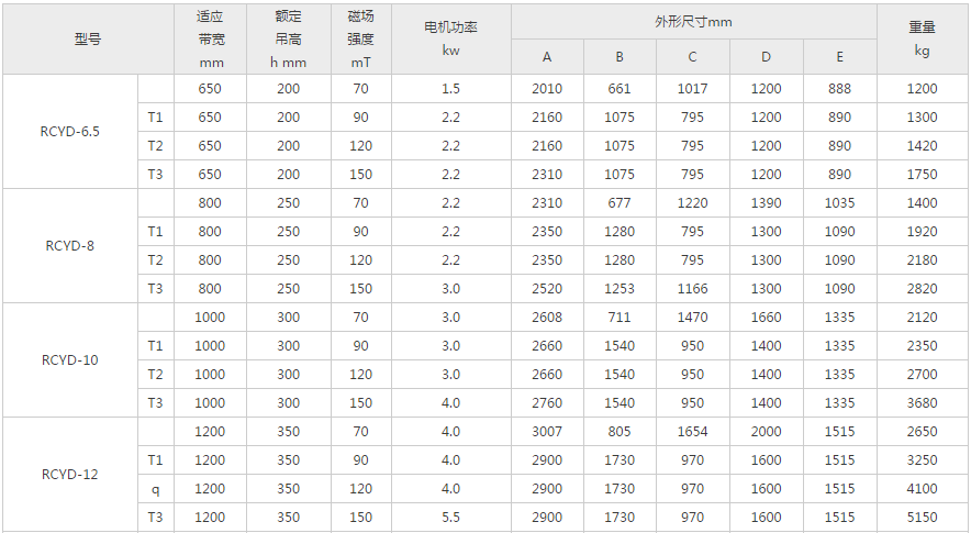 RCYD型自卸式榴莲视频毛片與RCYC係列型號等同,適用於各行業輸送帶輸料除鐵。可實現連續不斷的吸棄鐵。皮帶具有自動糾偏功能,運行可靠、維護簡單。其內部磁路采用完善的磁結構,保障整機在惡劣環境中無故障長期運行。擁有防爆型和鎧裝型。