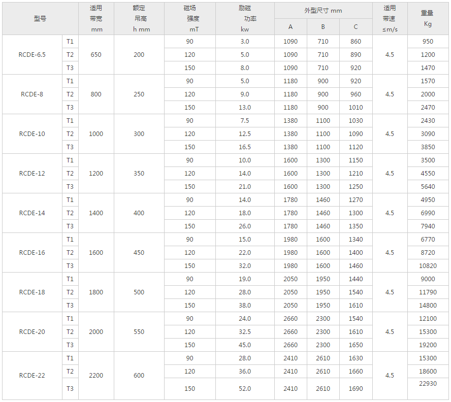 RCDE型油冷電磁榴莲视频毛片,內部采用先進的內外置式油循環散熱管設計和內部勵磁線圈獨特繞製技術,全密封結構,具有磁力大、防塵、防雨、耐腐蝕、連續工作使用壽命長等特點。
