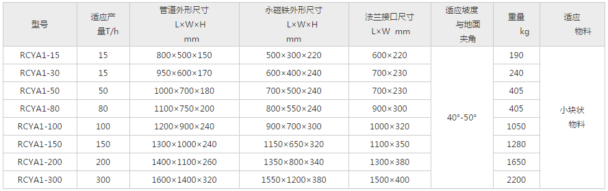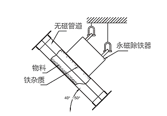 RCYA型傾斜管道式永磁榴莲视频毛片適合沒有輸送皮帶,隻能提供下料溜槽的場合。當散狀物料經過時,鐵雜物被高磁場的永磁鐵吸附,清除鐵雜質時,打開管道專用門將雜質人工取除。該設備適用於含鐵量較少的場合,主要應用於水泥、化工、煤炭、塑料、耐火材料、建材等行業的下料管道中清除雜質。